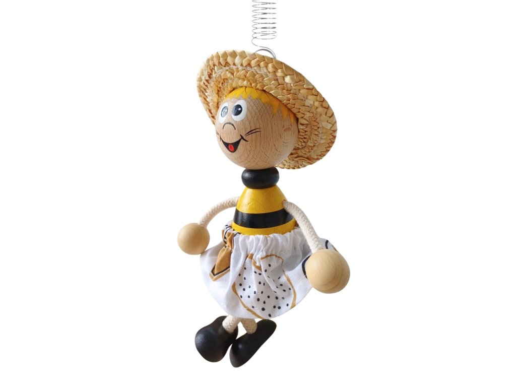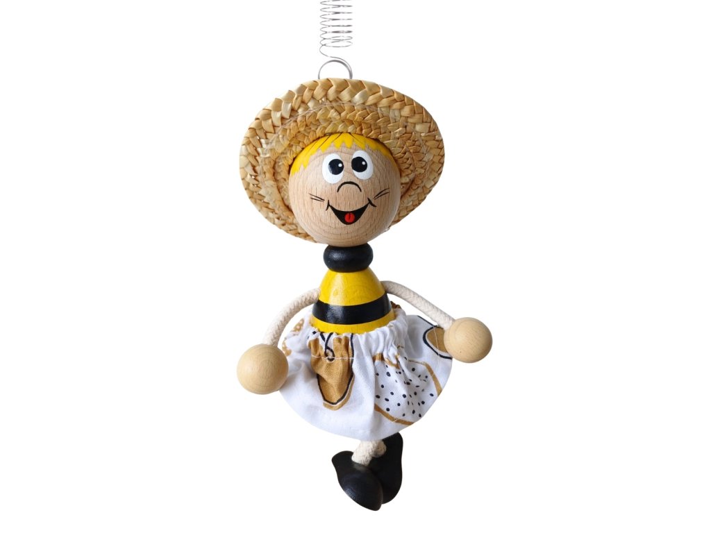 Bee with skirt - wooden figure on spring