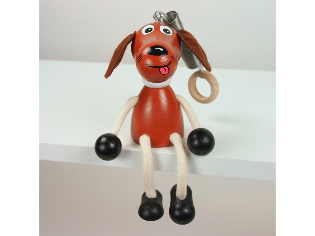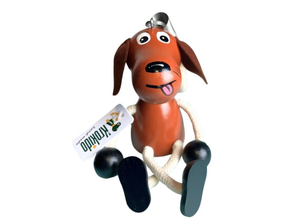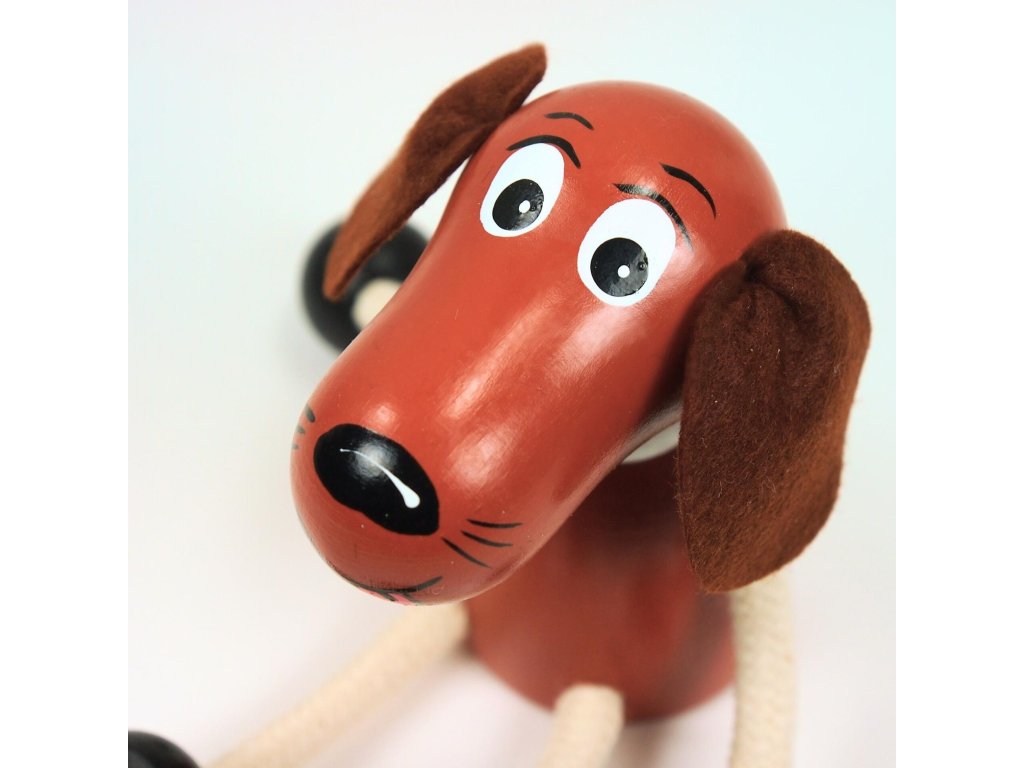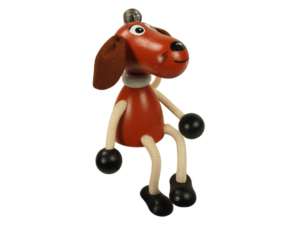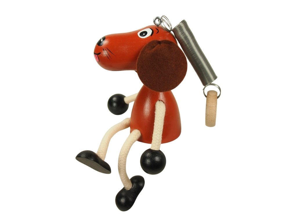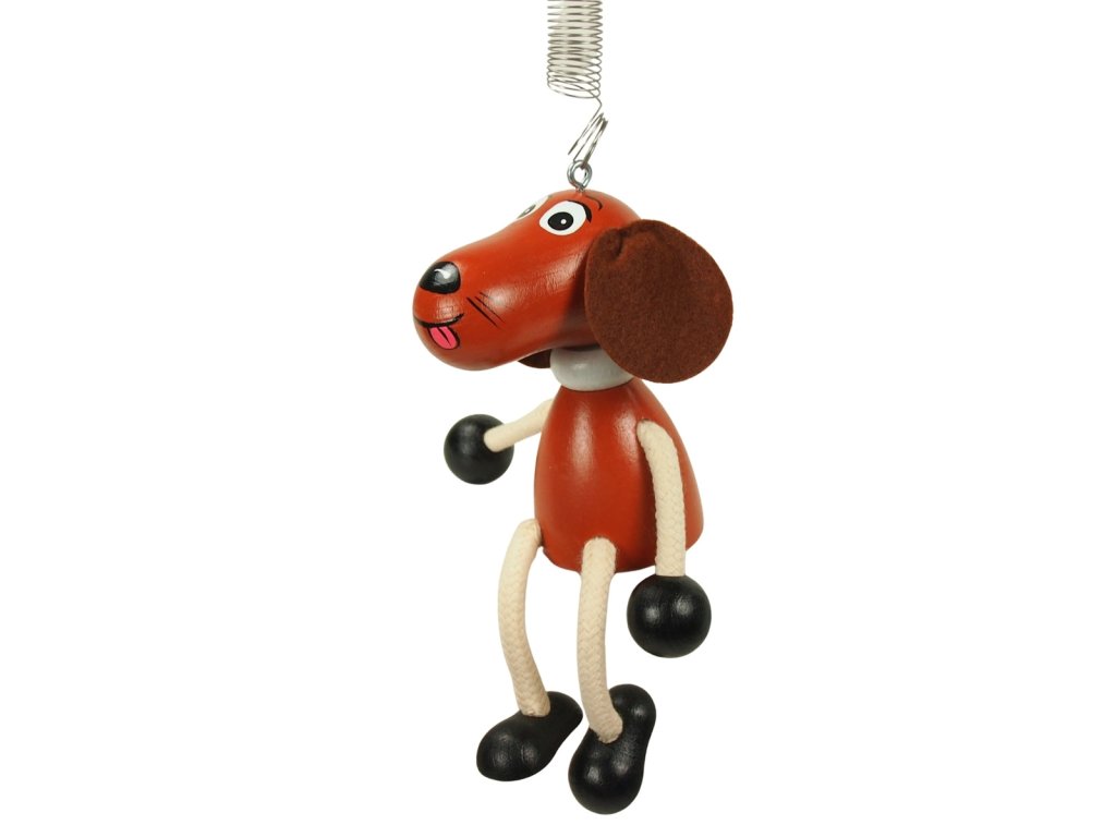 Hnědý pejsek - dřevěná figurka na pružině