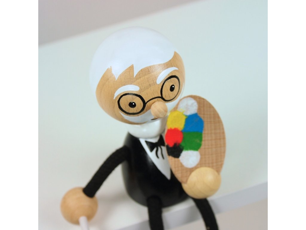 Malíř Alfons - dřevěná figurka na pružině