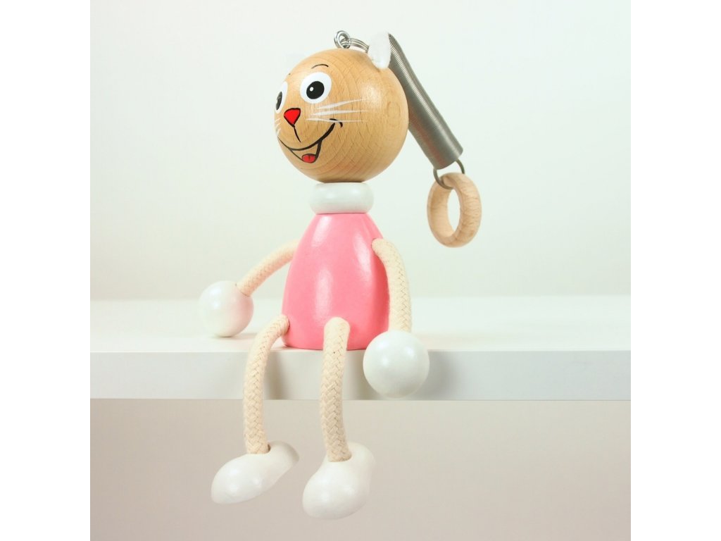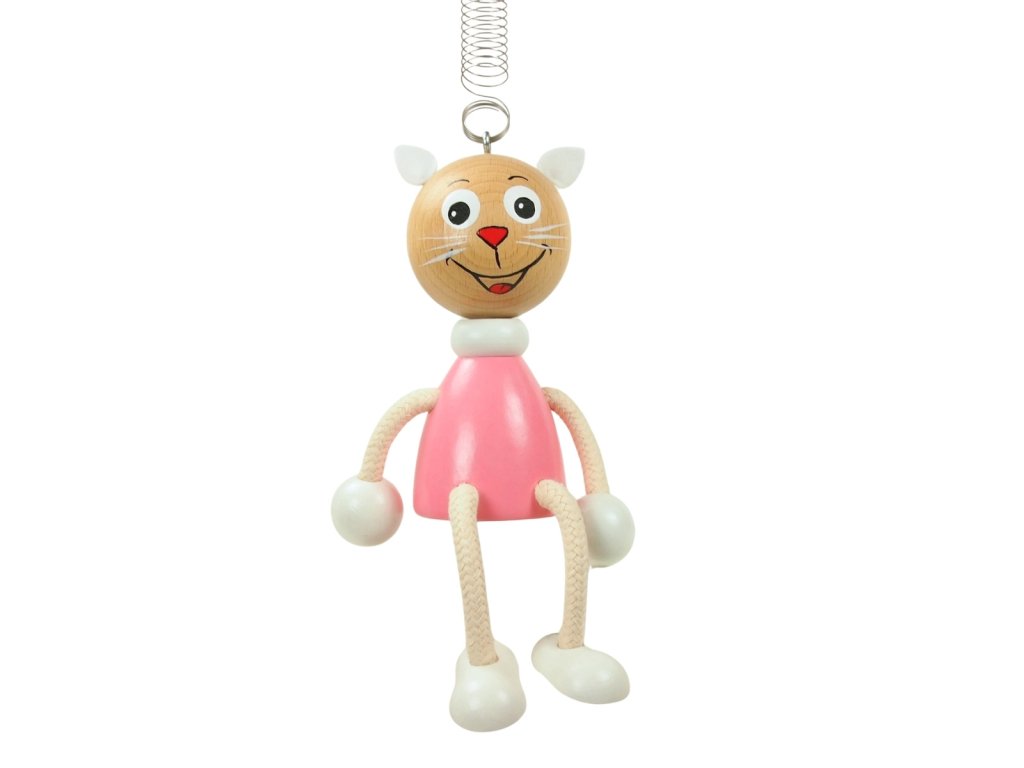 Pink kitty - wooden figure on spring