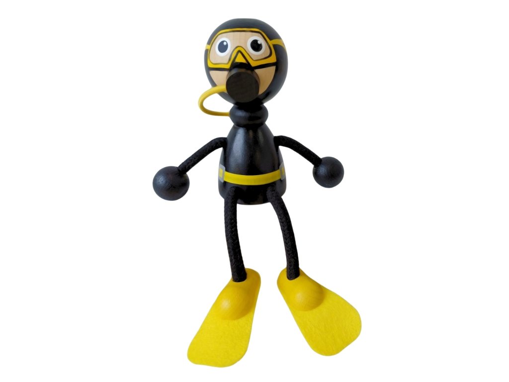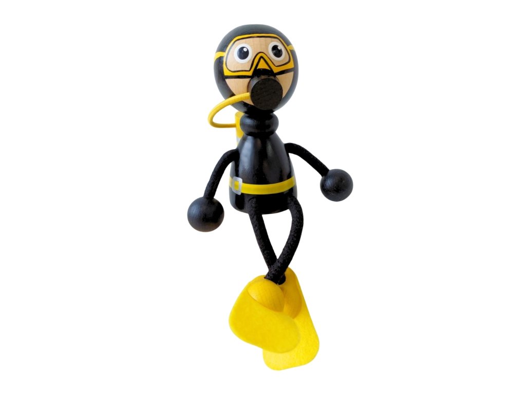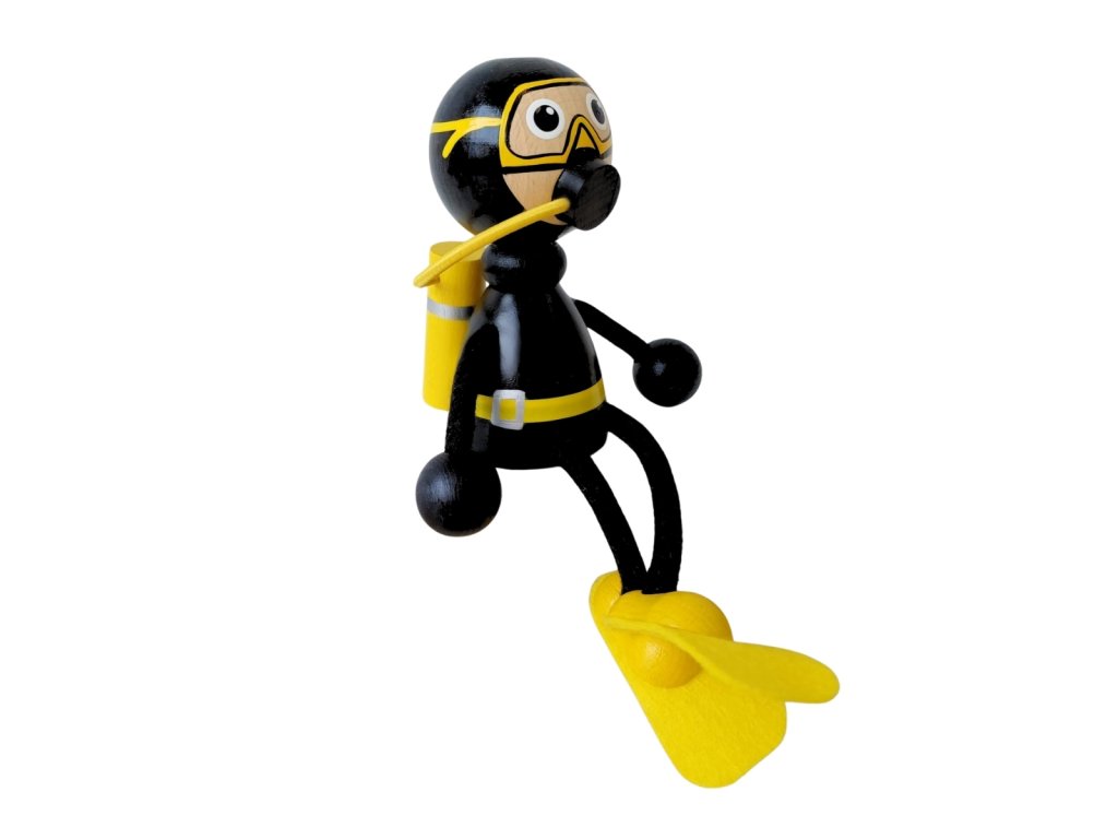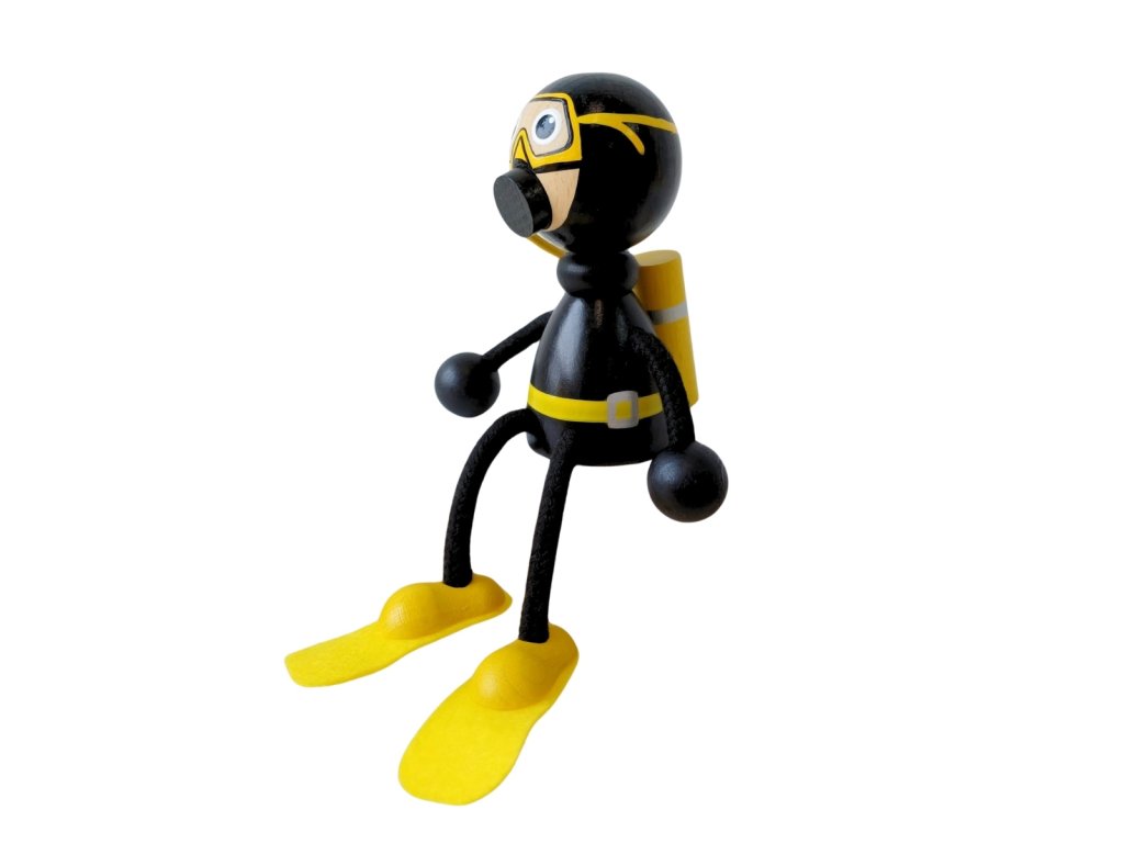 Wooden sitting figures will be a valuable addition to any souvenir shop, gift shop or toy shop. In the wide range of animals and fairy-tale creatures or human creatures, every customer who is looking for something original and really special will find something to choose from. The scuba diver with precise hadn painting is an original gift or souvenir for scuba divers, diving lovers or any souvenir shops in sea areas.